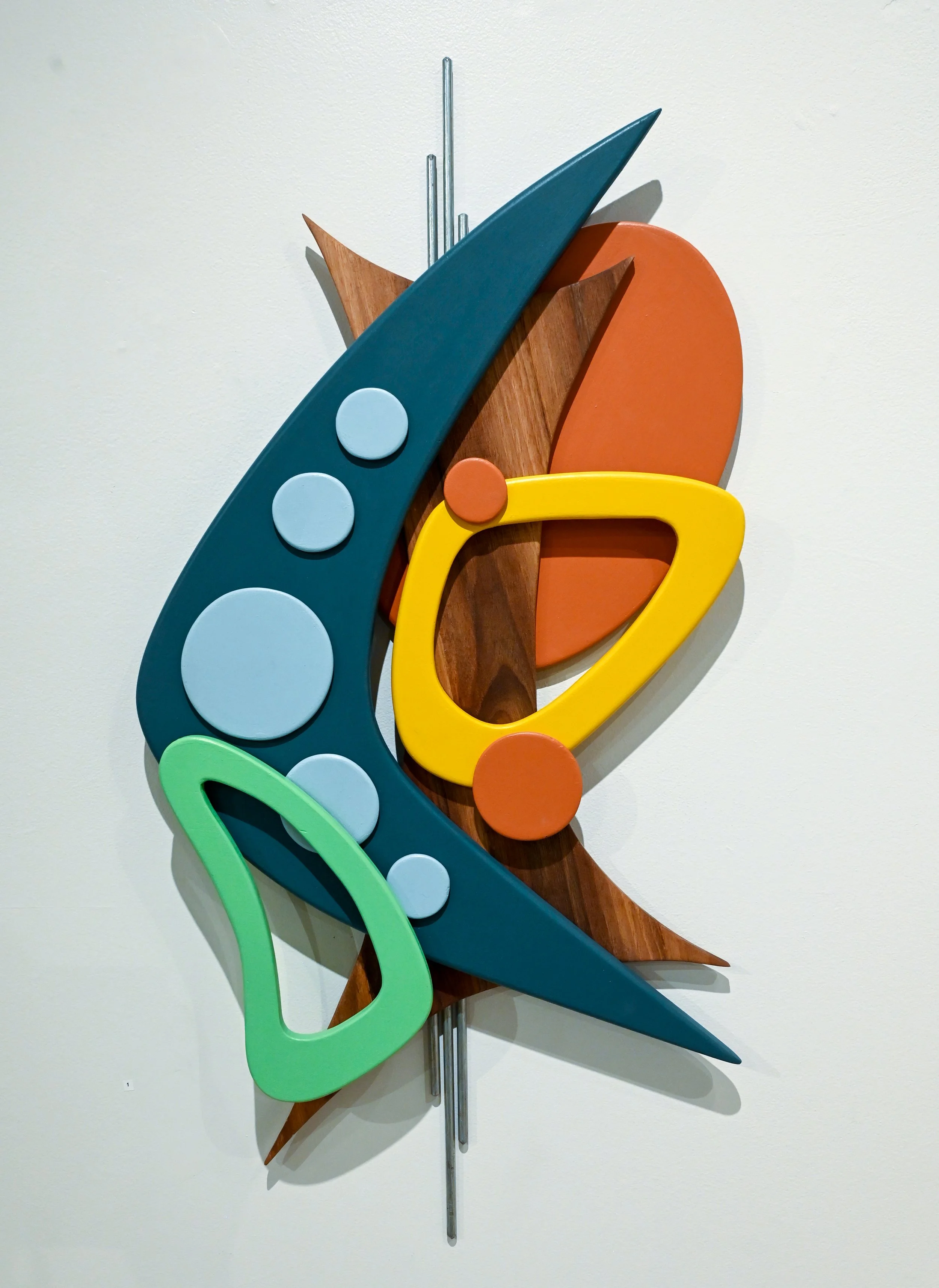 Atomic Age ✦ Painted Birch Wood, Walnut Wood, Steel Rod, 31” x 15” View fullsize View fullsize View fullsize View fullsize